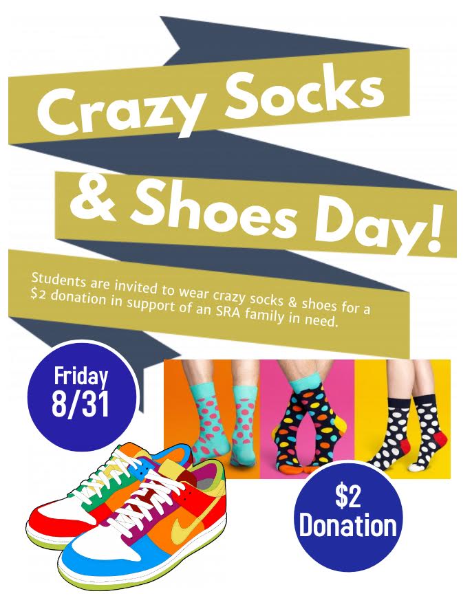 Crazy Socks and Shoes Day Crazy Sock and Shoe Day, Friday, August 31st with a $2 donation supports a SRA family in need. August 29th, 2018| Share This Story, Choose Your Platform! facebooktwitterEmail Related Posts