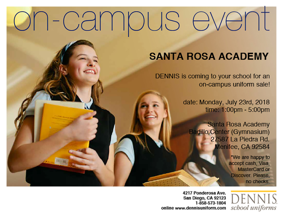 Dennis Uniform Sale July 2018 Our Annual Dennis Uniform Sale will be held on campus Monday, July 23rd from 1-5pm. March 30th, 2018| Share This Story, Choose Your Platform! facebooktwitterEmail Related Posts