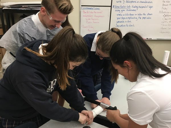 Dr. Daniel McKinney’s Environmental Science classes engineered their own solar-powered, vertical, hydroponic systems out of recycled/repurposed materials titled Hydrorecyverticultrue.