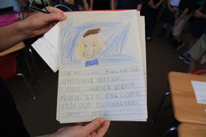 The students in Mr. Borjas’ class asked questions including, what his favorite American symbol was and if his job was hard.