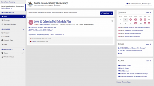 To view the different schools click on Switch school in the upper left corner. The center will display the most recent emails and posts. On the right side you will see the calendar for the school as will as files and important links. You can click on View All to the right of Links to view all our posted links.