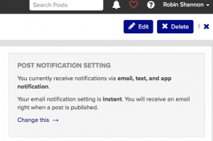 To change your Post notification preference click on the Change this link on the right side under Post Notifications Settings.